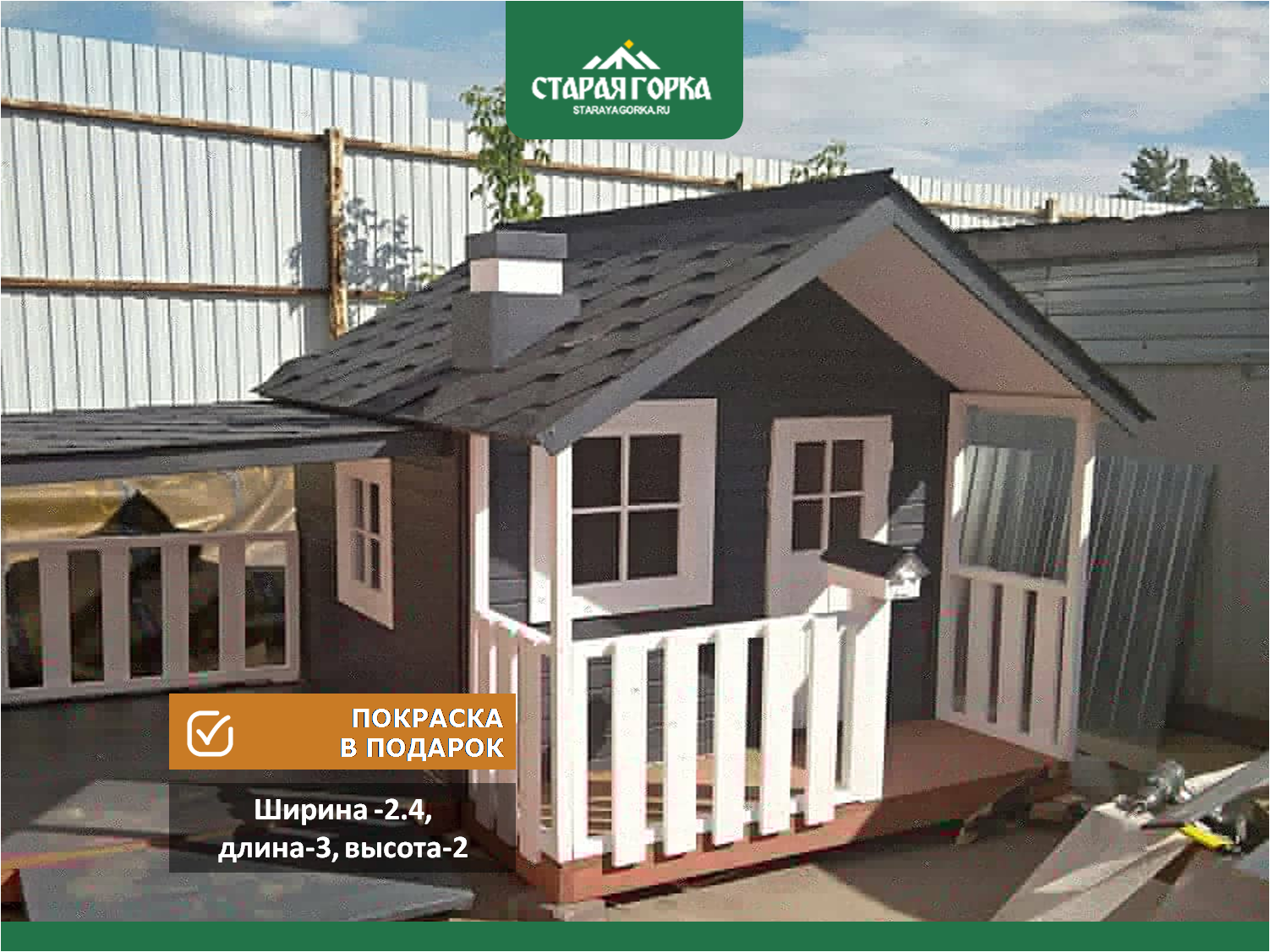 Размеры (по основанию): ширина 2,4 м, длина 3 м., высота 2 м.