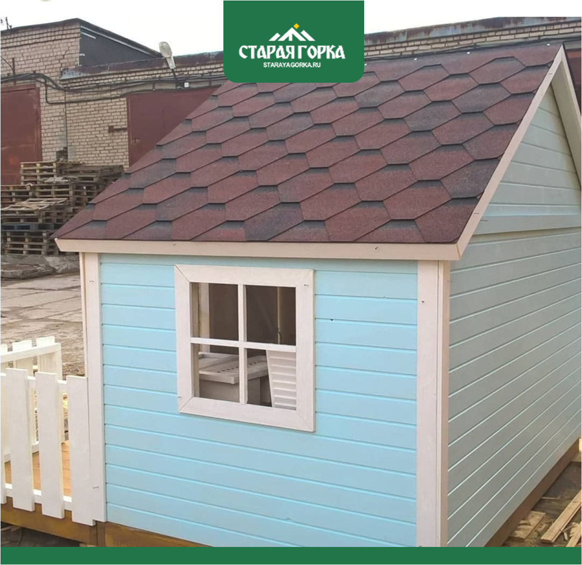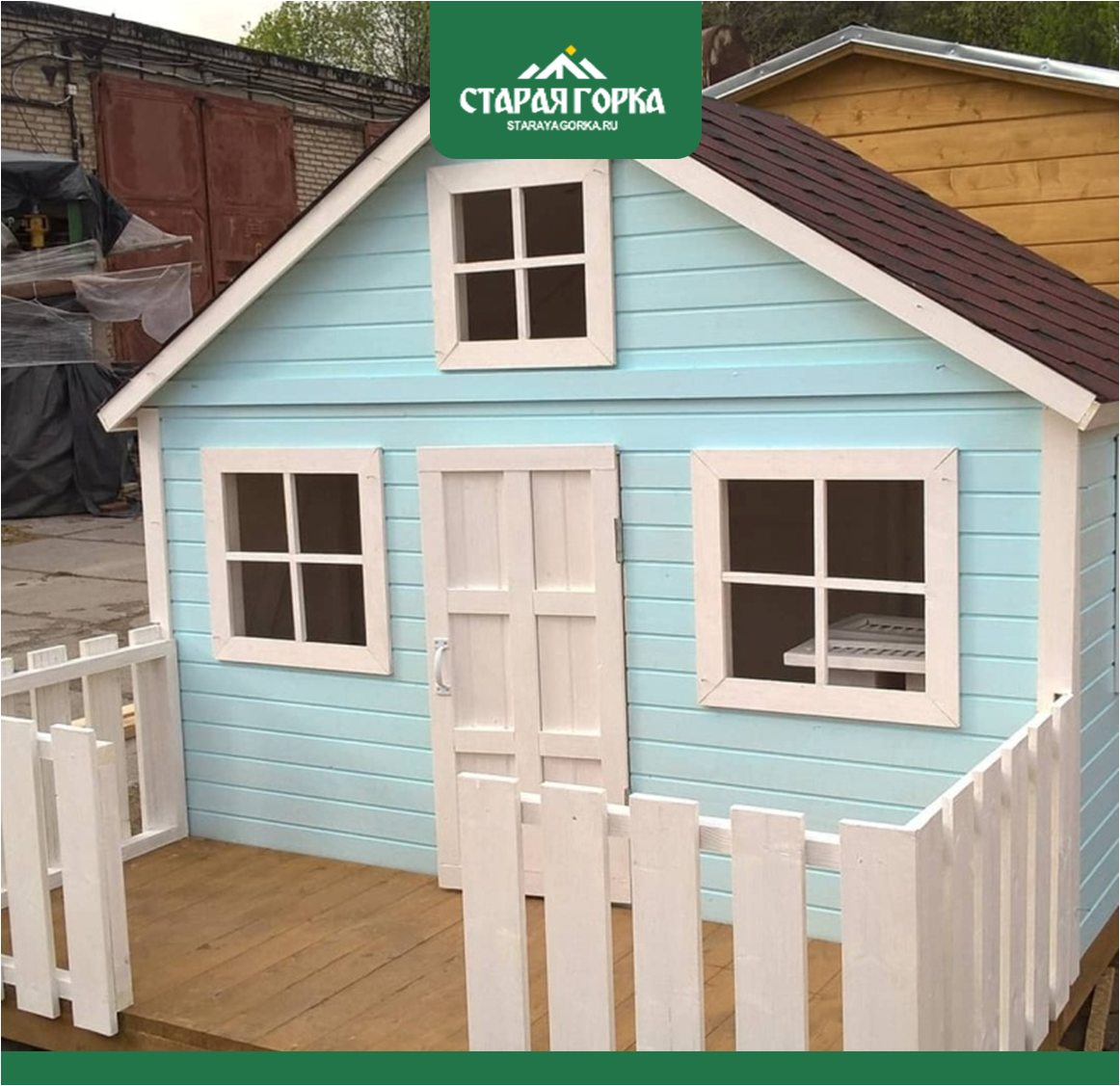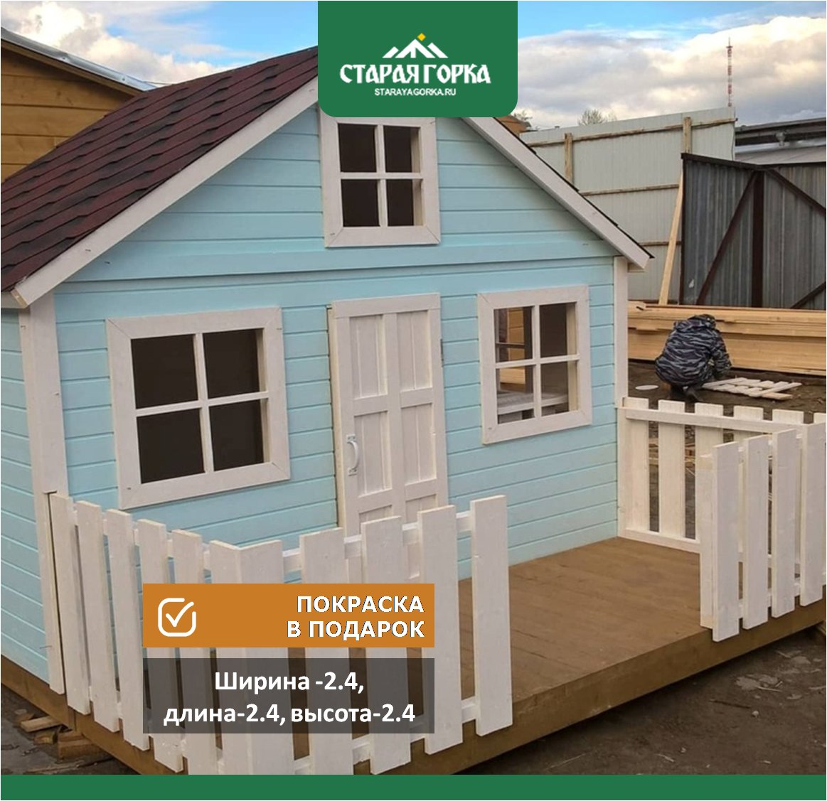 Обвязка - 100*30 мм. Лаги пола - доска 100*30 мм. Пол - доска строганная 20*95 мм. Каркас стен - доска 45*45 мм. Стропила - брусок 45*45 мм. Обрешетка - сплошная из вагонки. Карнизы, наличники, подшивка свесов крыши - доска сухая строганная 15*80 мм. Горка пластиковая.